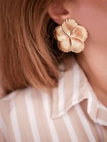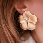 Boucles d'oreilles de la gamme LÉONIE. Grandes fleurs majestueuses dorées à l'or fin 24 carats ou plaquées argent 925. Attaches clous.