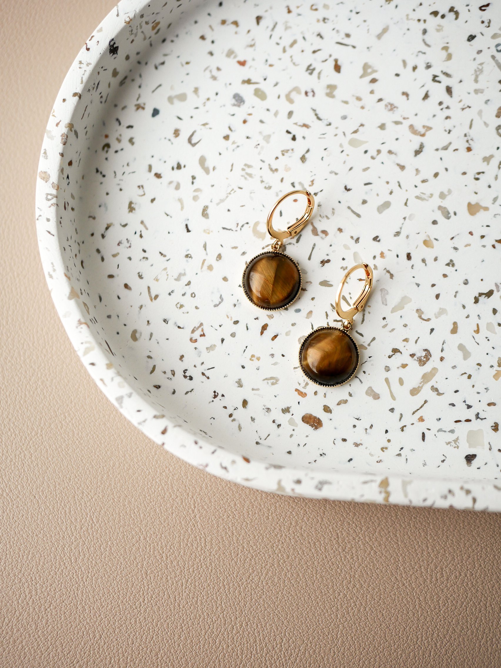 Boucles d'Oreilles Pendantes ZASKIA - Oeil de Tigre