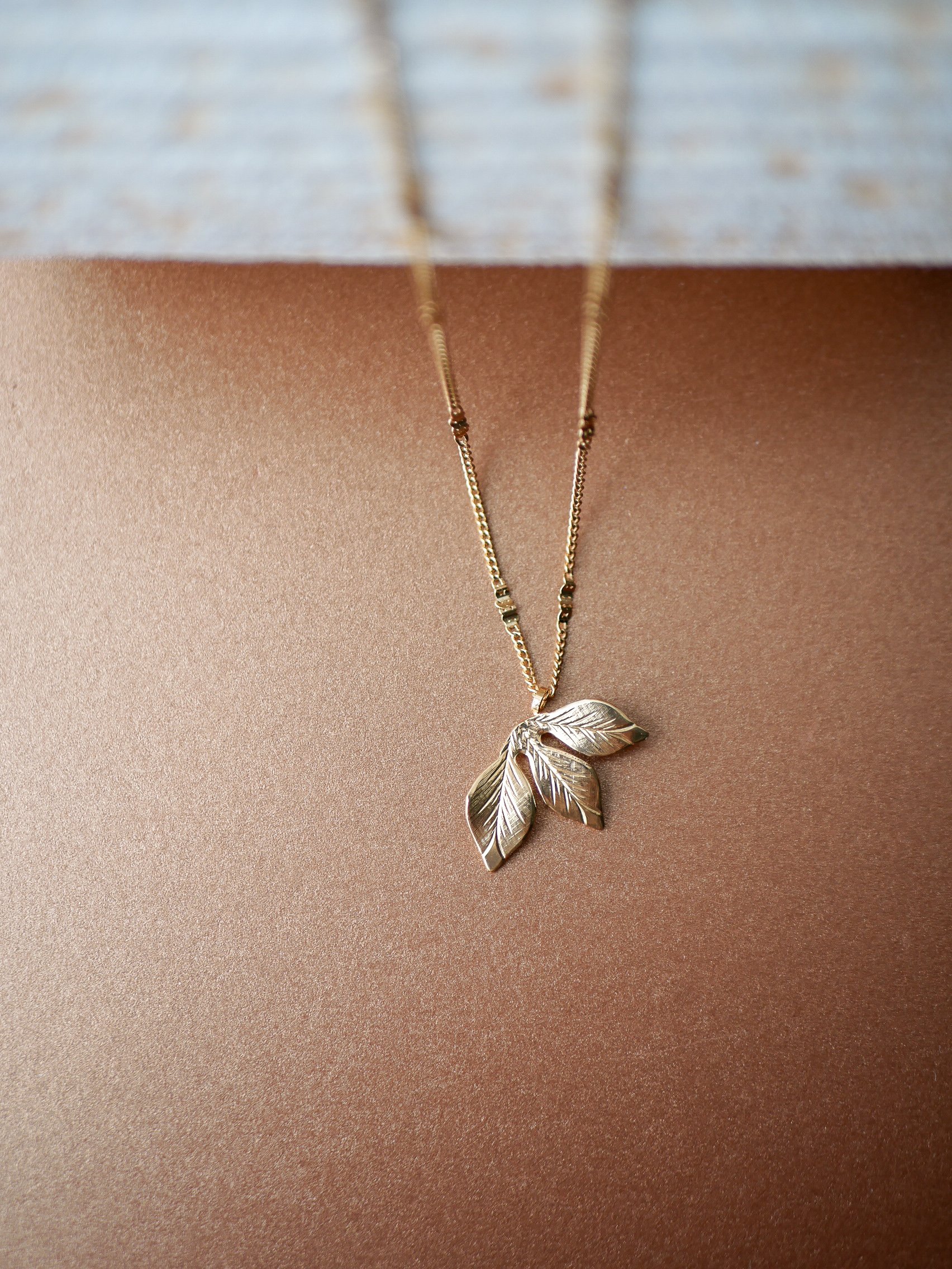 Collier de la gamme ISADORA, sublime feuille sur jolie chaine. Doré à l'or fin 24 carats ou plaqué argent 925. Attache mousqueton.