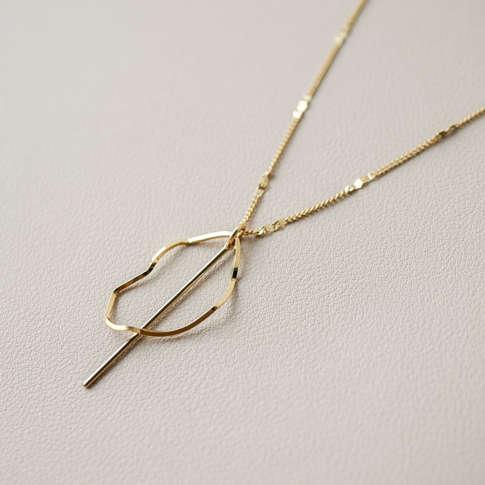Collier de la gamme LEEHI, pendentif à la forme organique sur une jolie chaîne travaillée. Doré à l'or fin 24 carats. Attache mousqueton.