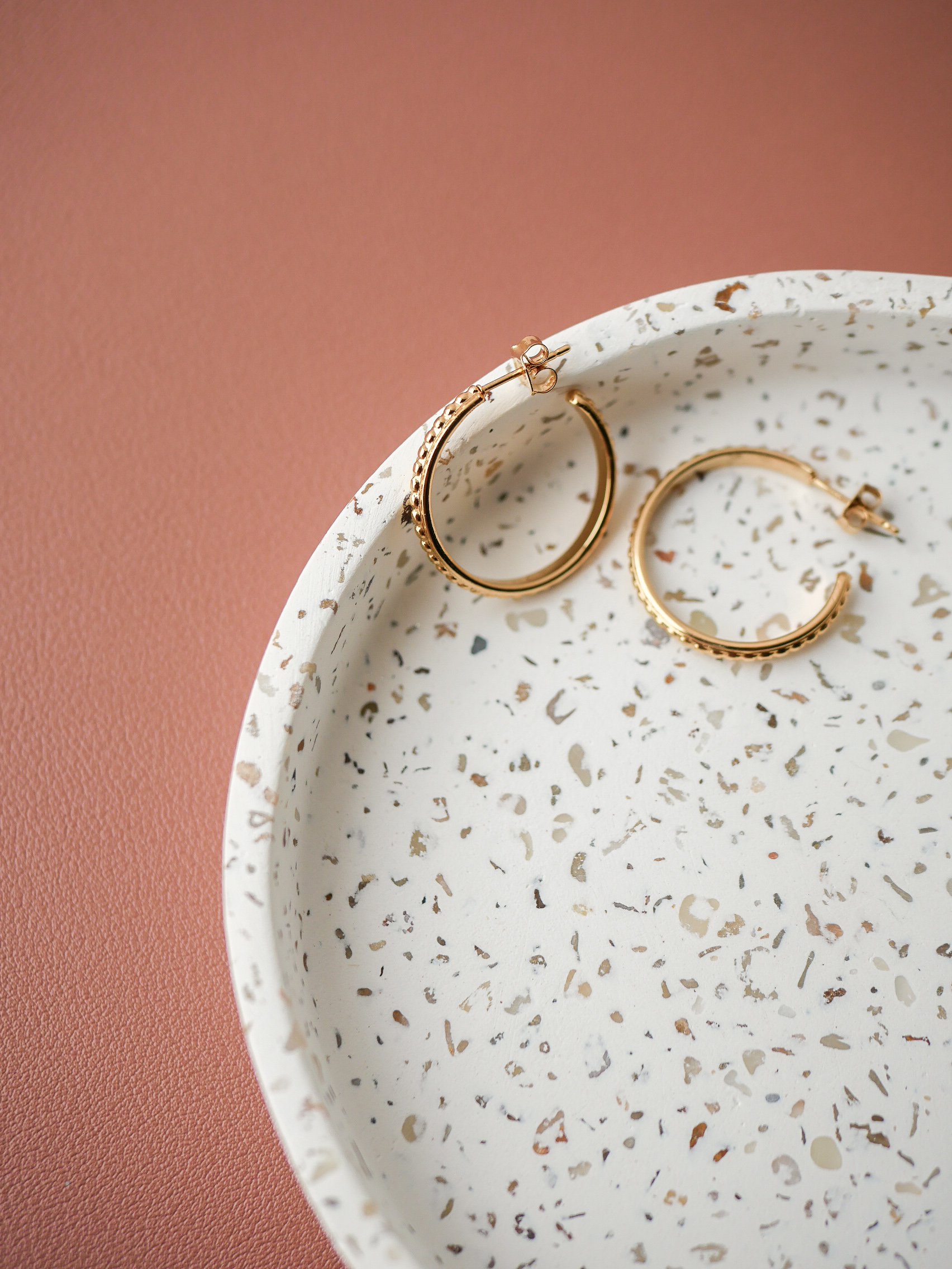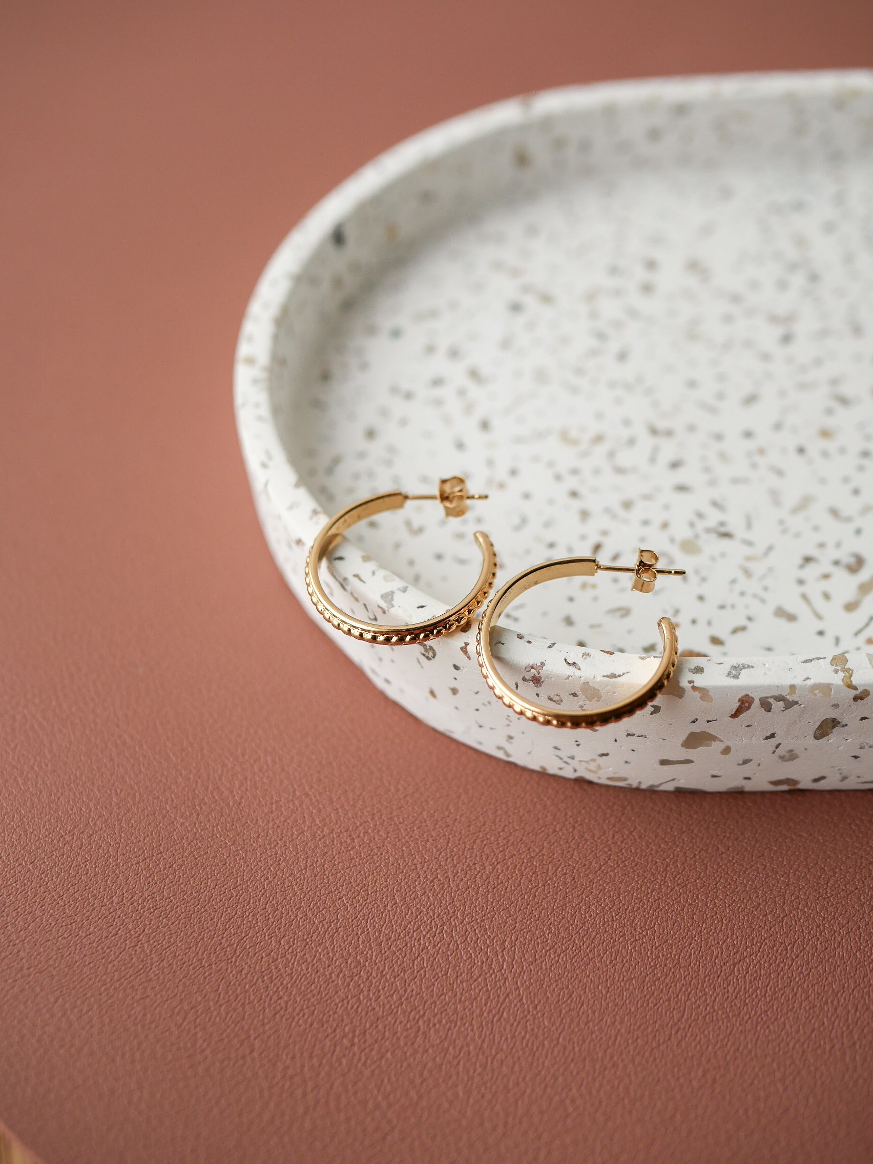 Petites créoles graphiques de la gamme IZIA, dorées à l'or fin 24 carats. Attaches clous.